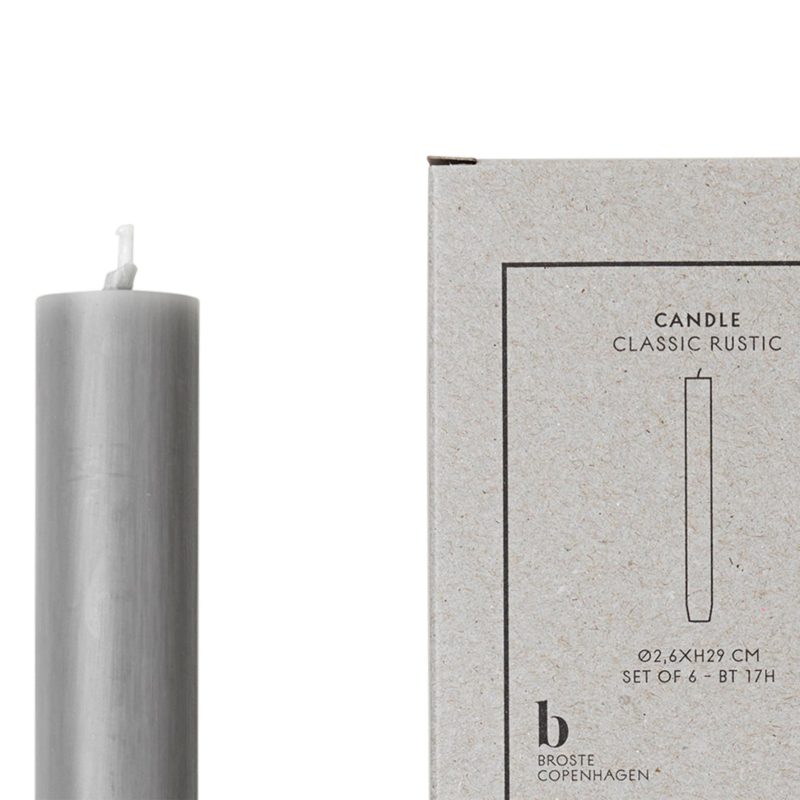 Broste Classic kerti 6 stk 2,6xH29 ljósgrátt