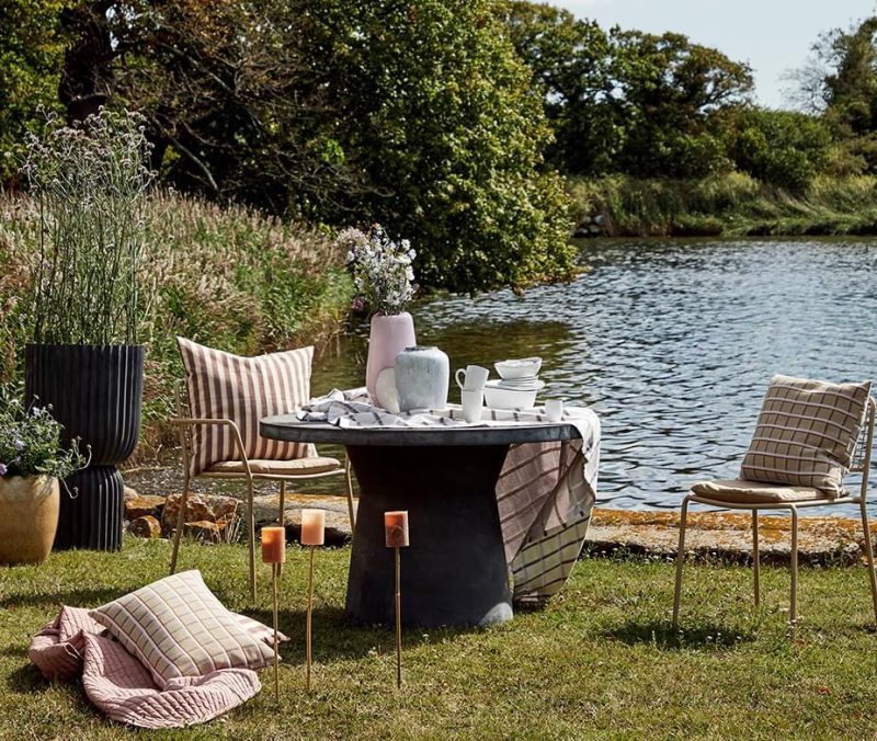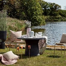 Garðborð frá danska merkinu Broste. Borðið er úr trefjarleir en trefjarnar gefa skemmtilega lifandi áferð sem vegur á móti hreinu línunum sem svo oft einkenna skandinavíska hönnun. Passar á svalirnar, í garðinn, garðskálann eða jafnvel inn í stofu!