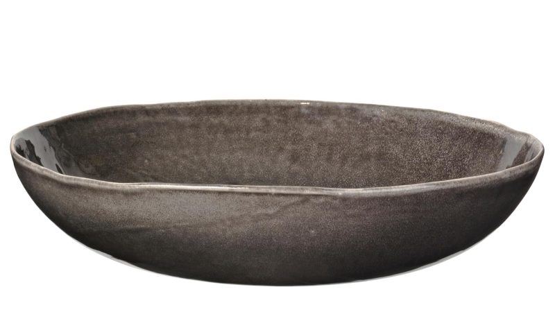 Skál í Nordic Coal línunni frá Broste Copenhagen. Skálin hefur fremur lágar brúnir en er mjög breið svo hún er sérlega hentug undir salat. Í þessari línu fást einnig ýmsar aðrar stærðir og útfærslur af skálum með háum eða lágum brúnum.