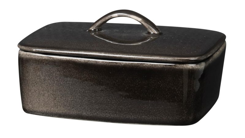 Smjörkúpull með loki í Nordic Coal línunni frá Broste Copenhagen. Í þessari línu fást einnig ýmsar aðrar stærðir og útfærslur af skálum, sumum eru litlar og henta vel til að bjóða upp á smjörklípu.