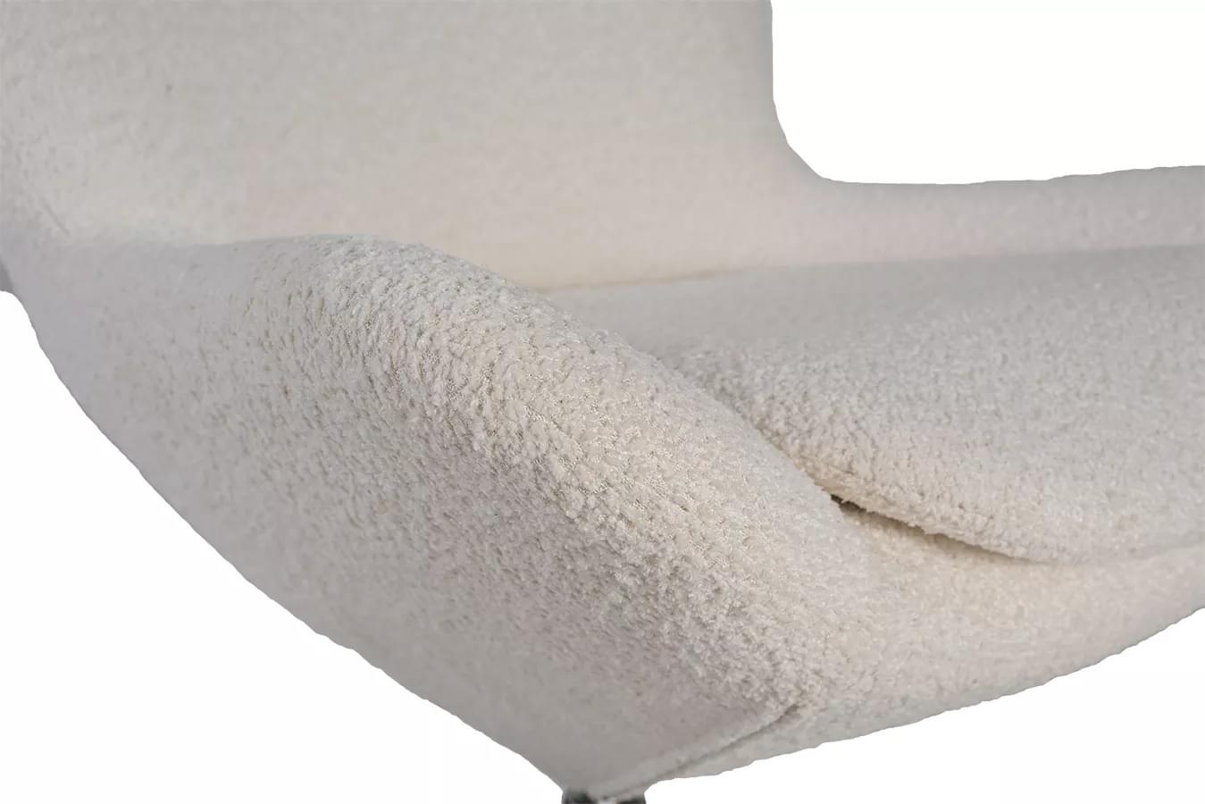 Glæsilegur og þægilegur hægindastóll í mjúku, kremlitu Teddy áklæði (loðnu). Stóllinn er á snúningsfæti úr svörtu krómi. Flottur einn og sér og líka sem stakur stóll við sófasett. Havana hægindastóllinn fæst í mörgum litum í áklæði og leðri.