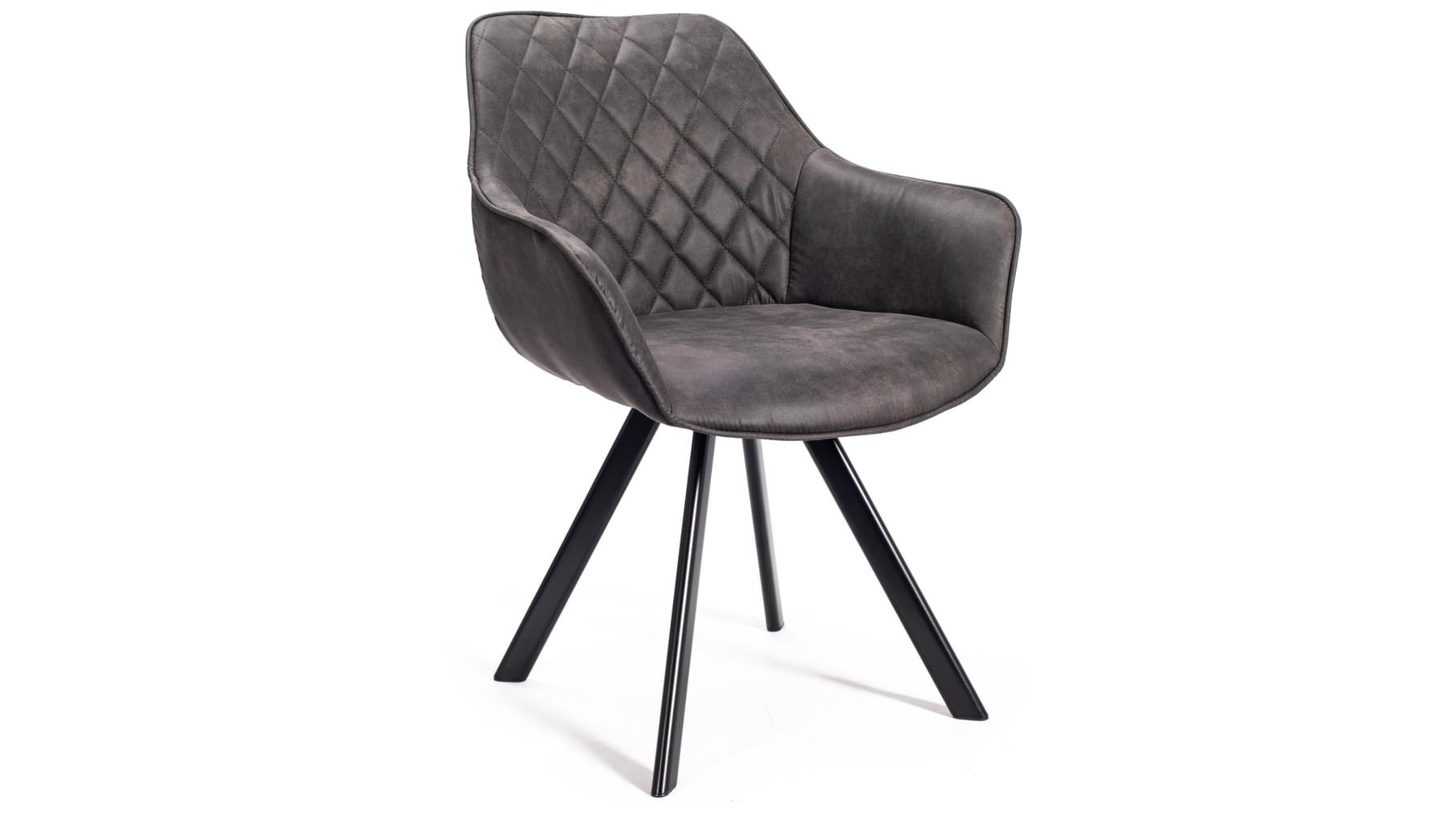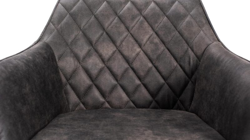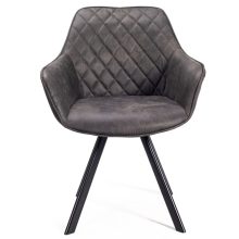 Borðstofustóll úr Cowboy áklæði. Fallegar, mjúkar línur og sterkir stálfætur. Stóllinn er með flotta tíglasauma innan á baki sem gefa honum sérstakt útlit. Armar gefa góðan stuðning. Fæst einnig í gervileðri.