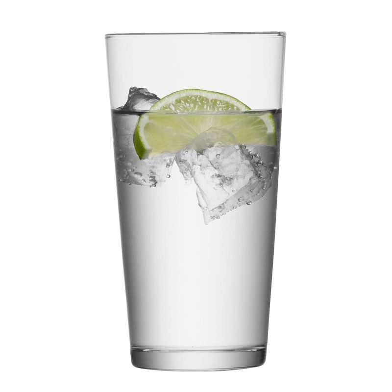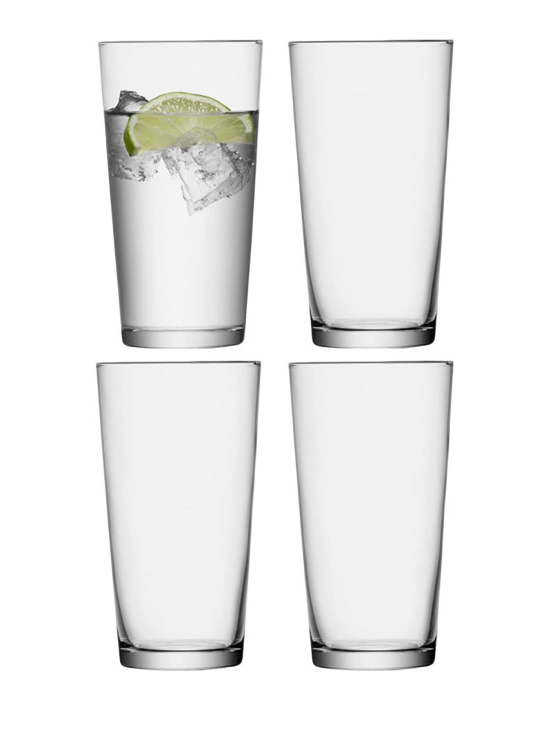 Sett af fjórum háum glerglösum. Glösin eru staflanleg og má setja í uppþvottavél.