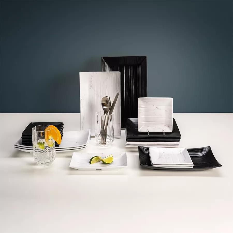 LW Melamin diskur marble ferkantaður 22cm