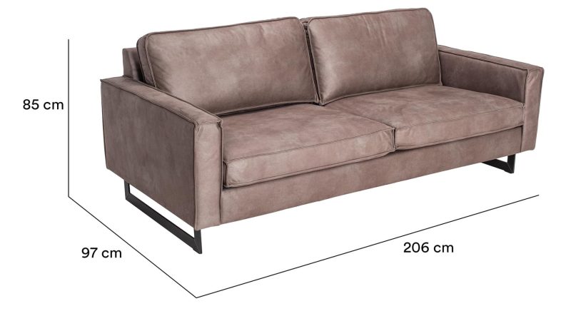 Þriggja sæta sófi í hinni vinsælu Pinto línu. Pinto eru úr sterku bonded leðri (leðurblöndu) í þremur litum. Innra byrði púða er úr endingargóðum, kaldpressuðum svampi, þá trefjafyllingu og loks mjúku yfirlagi. Fætur úr svörtu járni. Pinto fæst í nokkrum útfærslum, líka hnakkapúðar og skammel.