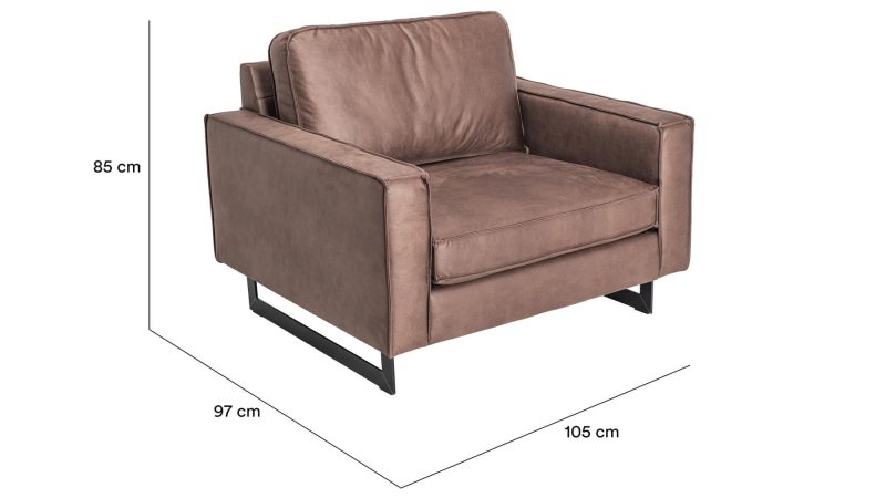 Hægindastóll sem passar við Pinto sófann eða einn og sér. Úr mjög sterku bonded leðri (leðurblöndu). Innra byrði púðanna er úr kaldpressuðum svampi, trefjafyllingu og mjúku yfirlagi. Fætur eru sterkir úr svörtu járni. Fæst í þremur litum.
