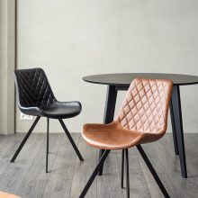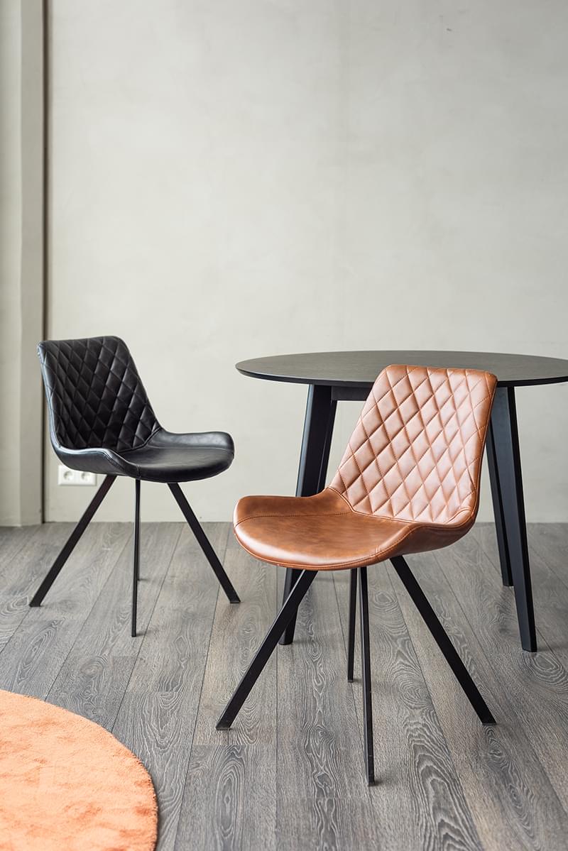 Borðstofustóll sem fæst í þrenns konar mismunandi áklæði (tveimur litum af gervileðri og einum af gráu áklæði). York hefur fallegar, mjúkar línur og sterka svarta fætur. Í baki stólsins er vandaður tíglasaumur sem gefa stólnum sérstakt útlit.